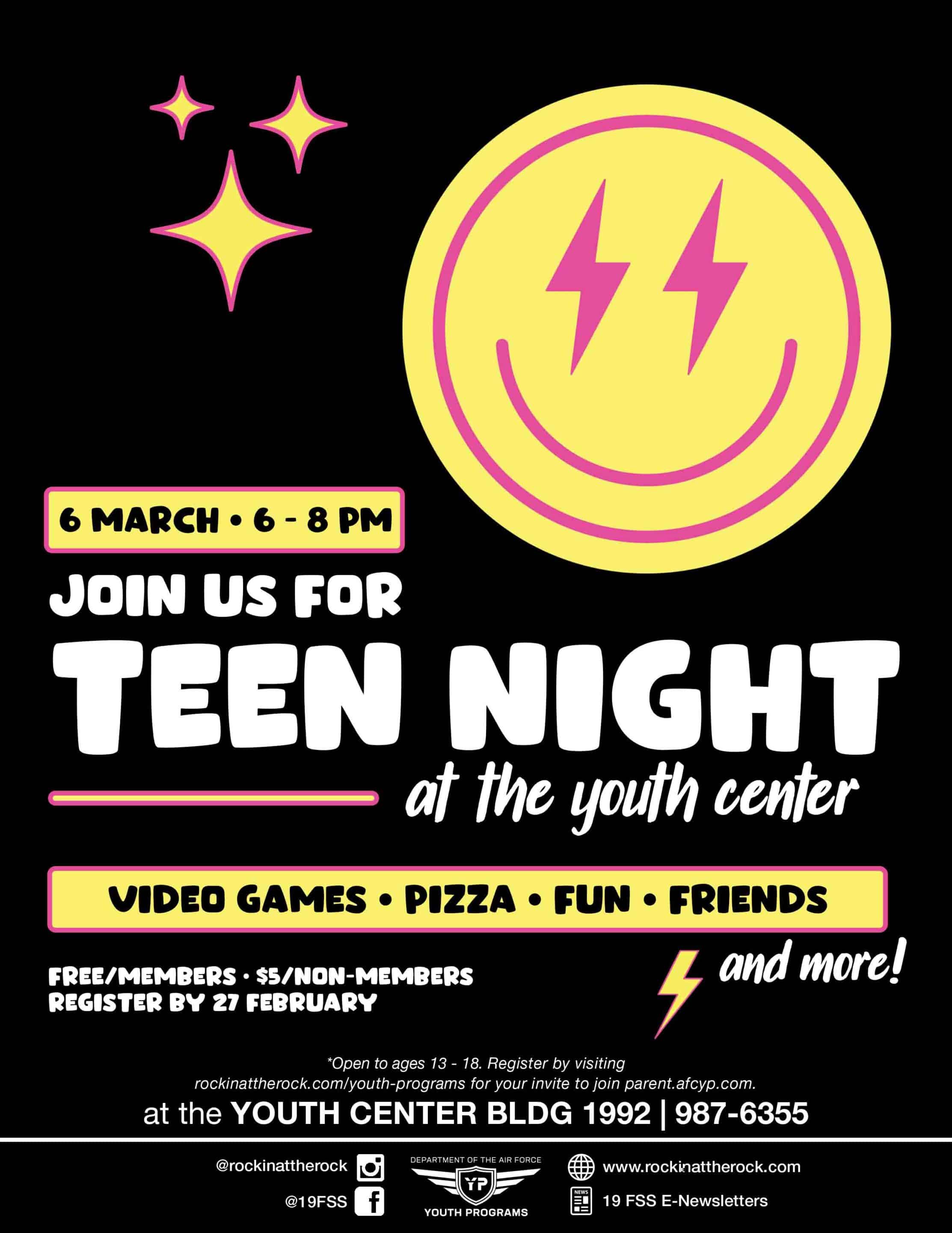 Teens, this one’s for YOU! Ages 13–18, join us for Teen Night at the Youth Center on March 6th from 6–8 PM! Get ready to play games, hang out with friends, […] Have some fun with unlimited bowling, black lights and great music in a dance club atmosphere! Shoe rentals are included. |