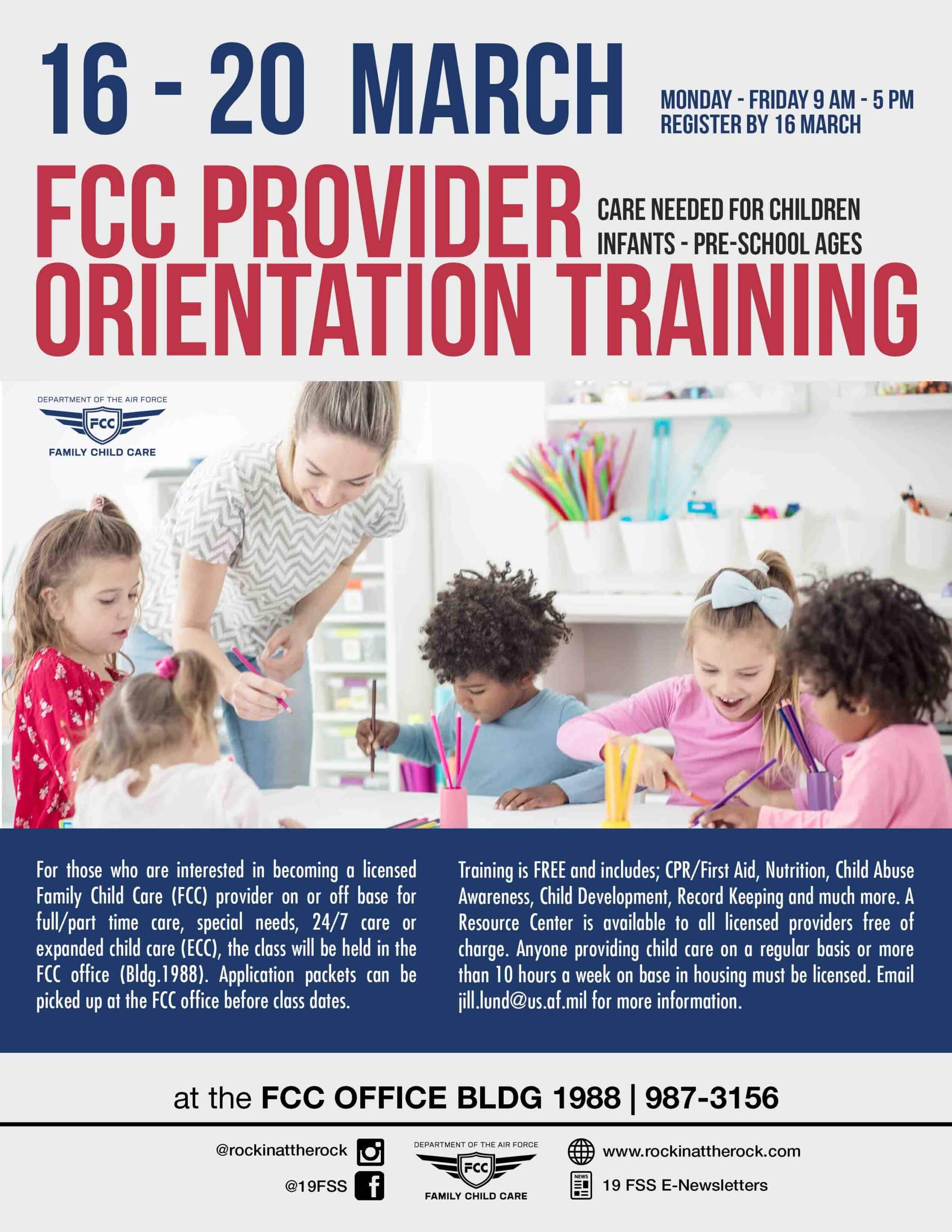 FCC Provider Orientation Training is for those who are interested in becoming a licensed Family Child Care Provider on or off base for full/part time care, special needs, 24/7 care […] |