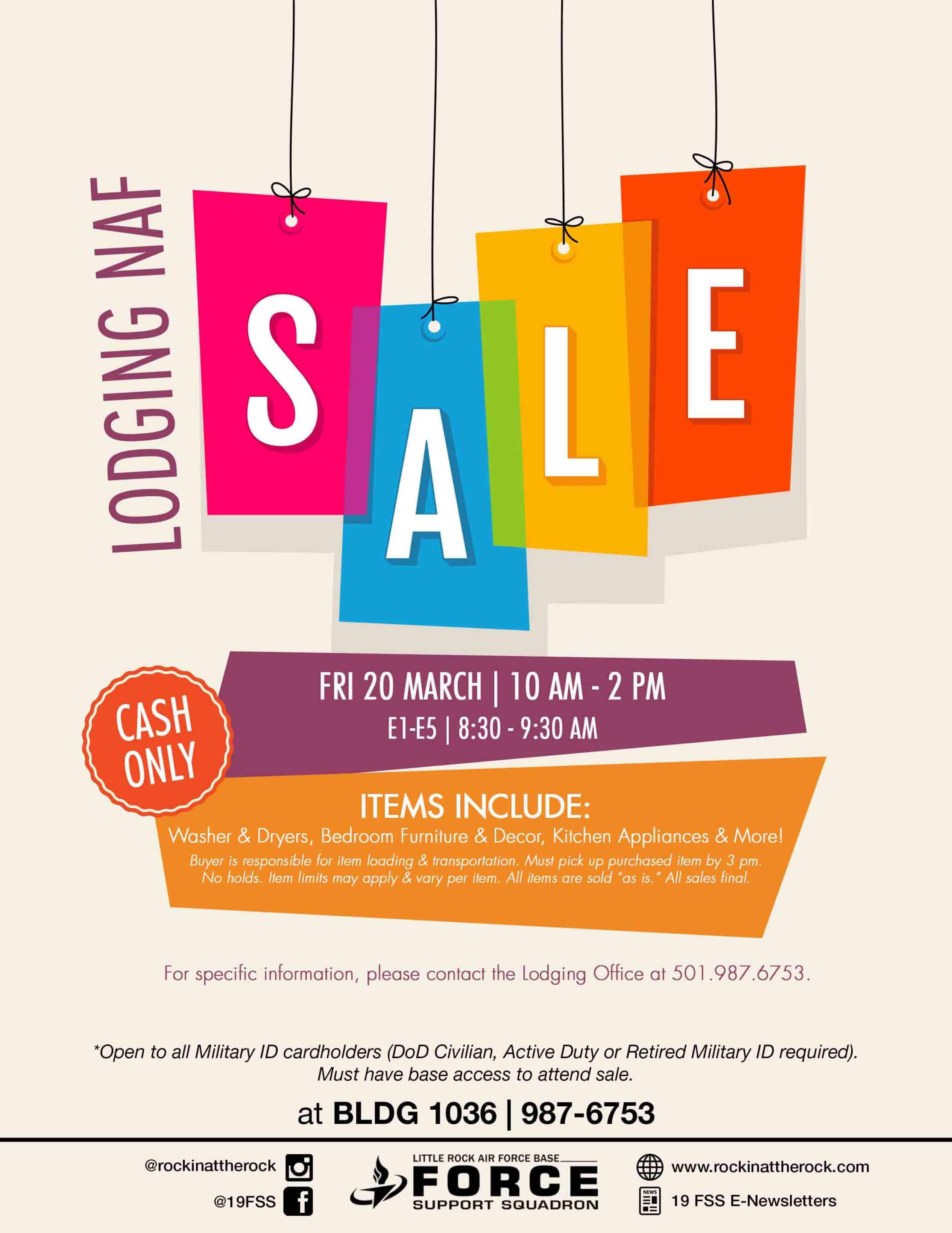 Score a deal at the Lodging NAF Sale! Stop by Building 1036 on March 20 from 10 AM – 2 PM for the Lodging NAF Sale! A variety of items […]