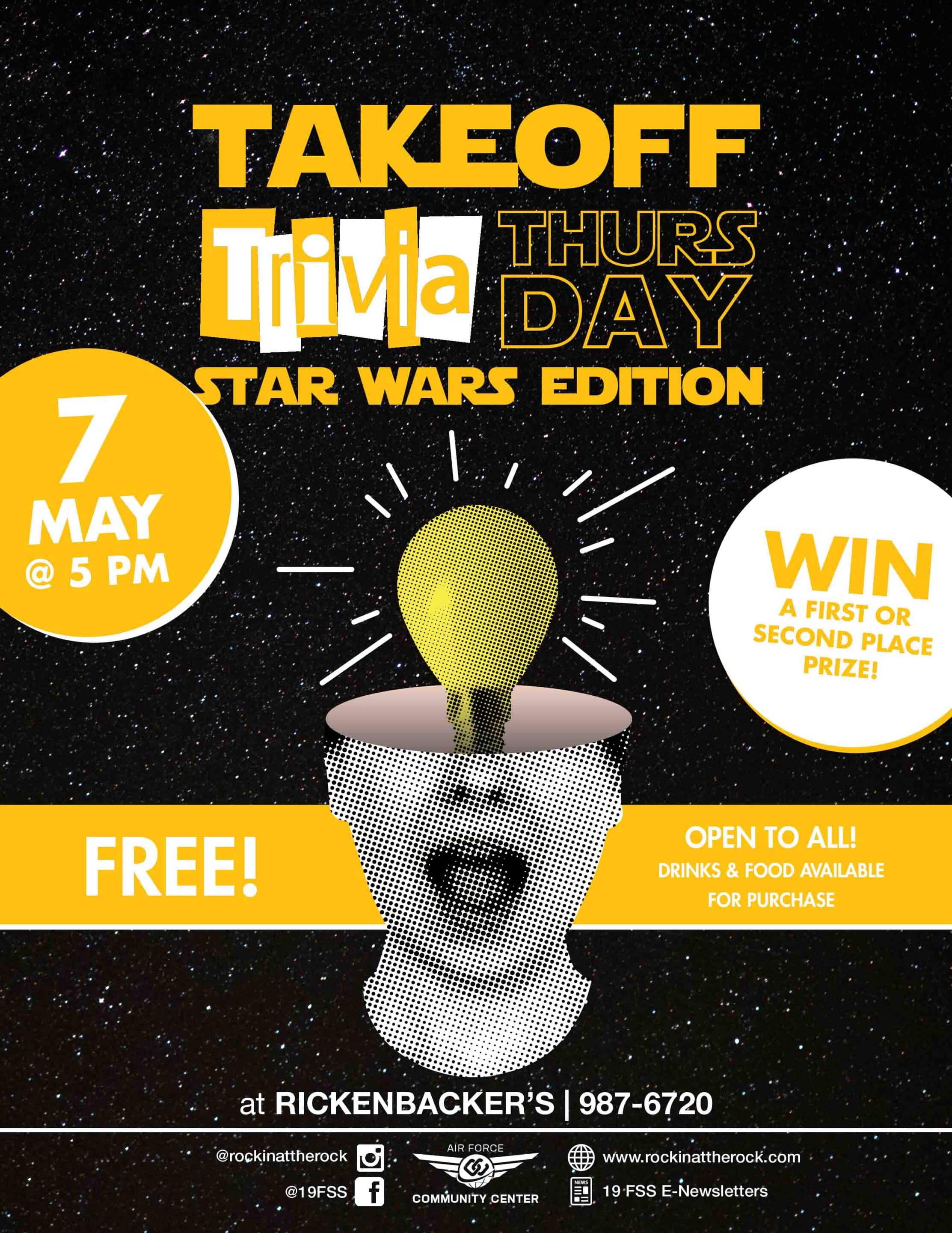 Trivia Night is taking off! Join the Community Center on May 7 at Rickenbacker’s (inside the Air Force Inn) for Take Off Trivia Thursday! Bring your brainpower, grab a drink, and get ready for a fast-paced night of fun. General knowledge trivia for all skill levels Special Star Wars-themed round in honor of May Trophies […] |